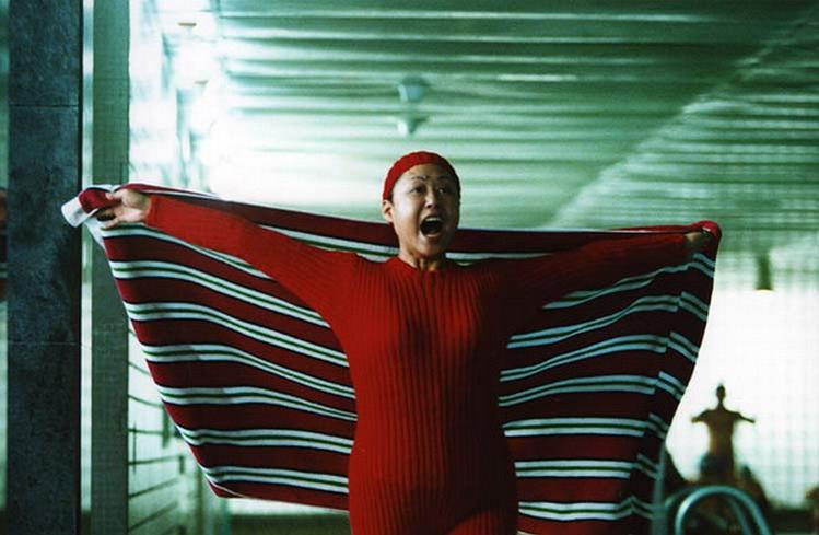 为了避免台词堆叠在一起有冰冷的距离感,李樯会时不时放置一些难以察觉的黑色幽默,比如,支宁为了寇逸再次杀人,寇逸惊慌又疑惑,脱口而出“你心里究竟憋了什么主意,非要让我逃脱法律的制裁”。这种冷冷的幽默在李樯之前的作品里随处可见:《姨妈的后现代生活》里姨妈穿着红色毛衣游泳;《立春》里王彩玲穿着礼服跑去跳楼。只是,荒诞总会生出一丝阴郁与惆怅。李樯说,他看到有观众用“牙酸”这个词来形容《蜂蜜的针》里那些幽默背后的余味。