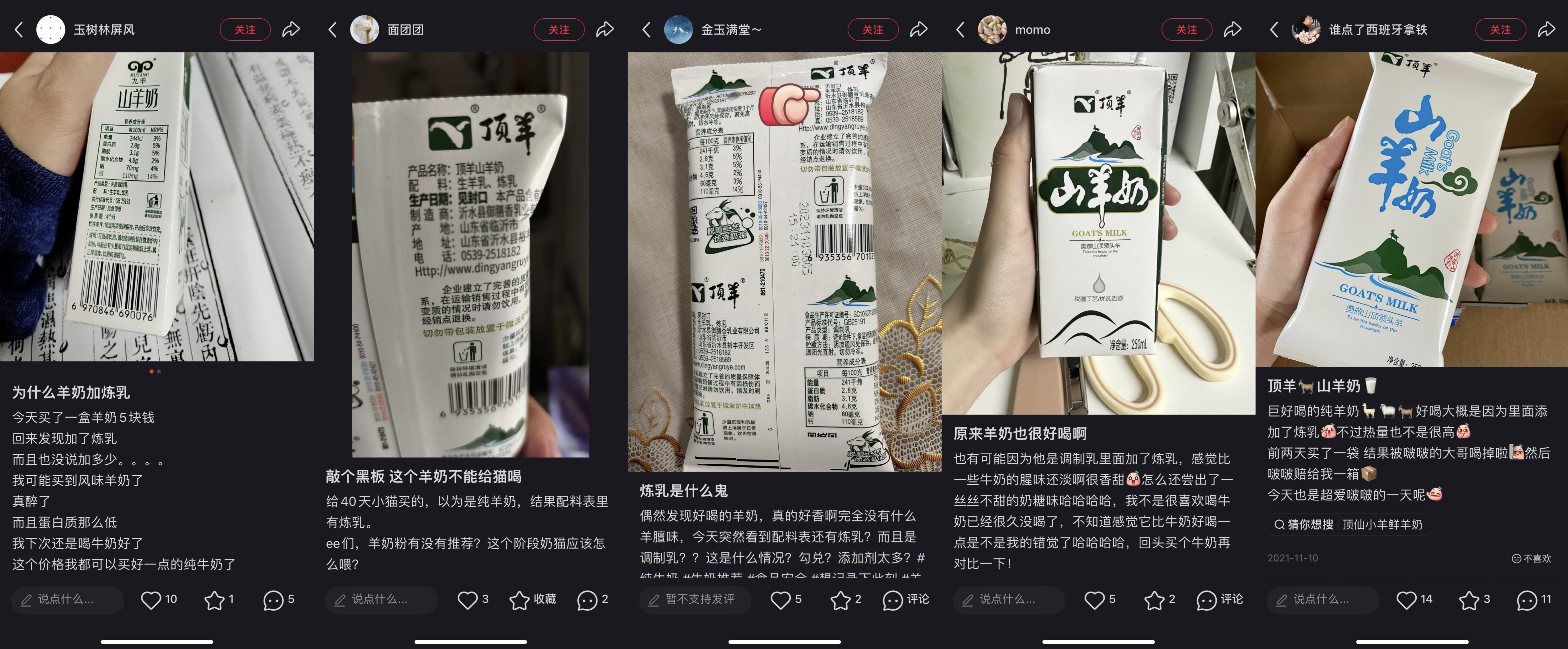 从电商平台的商品评价及小红书等社媒平台的用户反馈来看,消费者的观点分化明显:一部分用户认可添加炼乳后的风味,认为其“甜甜的”,且“没什么羊膻味”;而另一部分消费者则表达出不满,认为自己被包装上的名称所误导,购买时“以为这是纯羊奶”,感觉被包装“欺骗”。